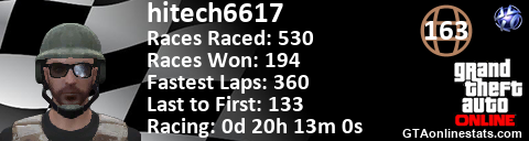 <a href="http://GTAonlinestats.com/showplayer/hitech6617"><img src="http://GTAonlinestats.com/racesignature/hitech6617/sig.png" alt="hitech6617" border="0" /></a>
