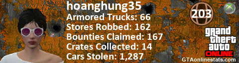 <a href="http://GTAonlinestats.com/showplayer/hoanghung35/2"><img src="http://GTAonlinestats.com/randomsignature/hoanghung35/2/sig.png" alt="hoanghung35" border="0" /></a>