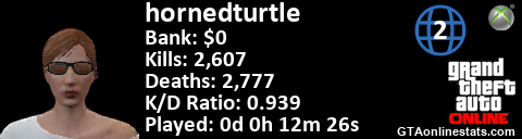 <a href="http://GTAonlinestats.com/showplayer/hornedturtle/2"><img src="http://GTAonlinestats.com/signature/hornedturtle/2/sig.png" alt="hornedturtle" border="0" /></a>