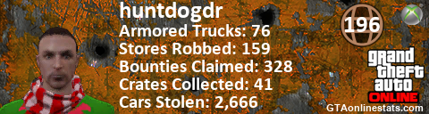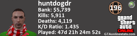 [URL=http://GTAonlinestats.com/showplayer/huntdogdr][IMG]http://GTAonlinestats.com/signature/huntdogdr/sig.png[/IMG][/URL]