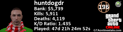 <a href="http://GTAonlinestats.com/showplayer/huntdogdr"><img src="http://GTAonlinestats.com/signature/huntdogdr/sig.png" alt="huntdogdr" border="0" /></a>