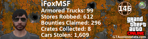 [URL=http://GTAonlinestats.com/showplayer/iFoxMSF][IMG]http://GTAonlinestats.com/crimesignature/iFoxMSF/sig.png[/IMG][/URL]