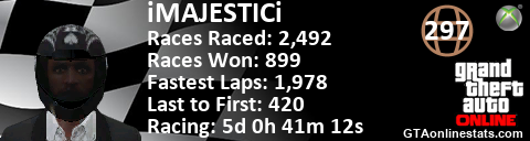 [URL=http://GTAonlinestats.com/showplayer/iMAJESTICi][IMG]http://GTAonlinestats.com/racesignature/iMAJESTICi/sig.png[/IMG][/URL]
