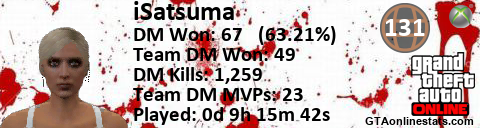 <a href="http://GTAonlinestats.com/showplayer/iSatsuma"><img src="http://GTAonlinestats.com/dmsignature/iSatsuma/sig.png" alt="iSatsuma" border="0" /></a>