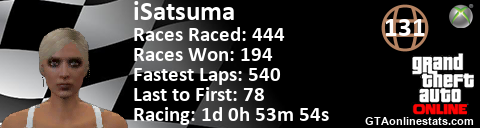 <a href="http://GTAonlinestats.com/showplayer/iSatsuma"><img src="http://GTAonlinestats.com/racesignature/iSatsuma/sig.png" alt="iSatsuma" border="0" /></a>