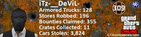 [URL=http://GTAonlinestats.com/showplayer/iTz-__DeViL-][IMG]http://GTAonlinestats.com/crimesignature/iTz-__DeViL-/sig.png[/IMG][/URL]
