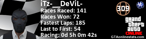 [URL=http://GTAonlinestats.com/showplayer/iTz-__DeViL-][IMG]http://GTAonlinestats.com/racesignature/iTz-__DeViL-/sig.png[/IMG][/URL]
