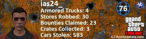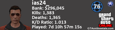[URL=http://GTAonlinestats.com/showplayer/ias24_][IMG]http://GTAonlinestats.com/signature/ias24_/sig.png[/IMG][/URL]