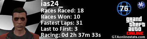 [URL=http://GTAonlinestats.com/showplayer/ias24_][IMG]http://GTAonlinestats.com/racesignature/ias24_/sig.png[/IMG][/URL]