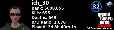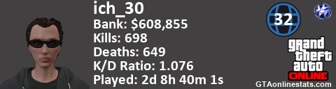 <a href="http://GTAonlinestats.com/showplayer/ich_30"><img src="http://GTAonlinestats.com/signature/ich_30/sig.png" alt="ich_30" border="0" /></a>