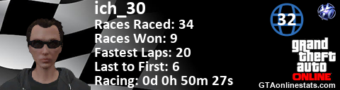 <a href="http://GTAonlinestats.com/showplayer/ich_30"><img src="http://GTAonlinestats.com/racesignature/ich_30/sig.png" alt="ich_30" border="0" /></a>