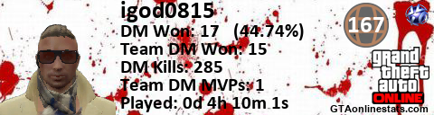[URL=http://GTAonlinestats.com/showplayer/igod0815][IMG]http://GTAonlinestats.com/dmsignature/igod0815/sig.png[/IMG][/URL]