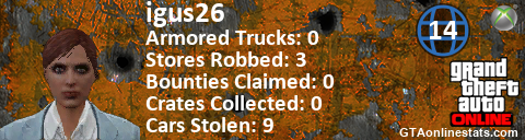 [URL=http://GTAonlinestats.com/showplayer/igus26][IMG]http://GTAonlinestats.com/crimesignature/igus26/sig.png[/IMG][/URL]