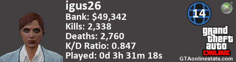 <a href="http://GTAonlinestats.com/showplayer/igus26"><img src="http://GTAonlinestats.com/signature/igus26/sig.png" alt="igus26" border="0" /></a>