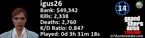 [URL=http://GTAonlinestats.com/showplayer/igus26][IMG]http://GTAonlinestats.com/signature/igus26/sig.png[/IMG][/URL]