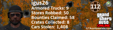 [URL=http://GTAonlinestats.com/showplayer/igus26/2][IMG]http://GTAonlinestats.com/crimesignature/igus26/2/sig.png[/IMG][/URL]