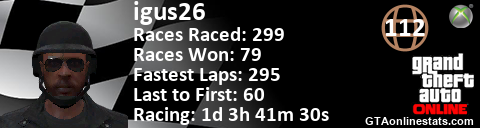 [URL=http://GTAonlinestats.com/showplayer/igus26/2][IMG]http://GTAonlinestats.com/racesignature/igus26/2/sig.png[/IMG][/URL]