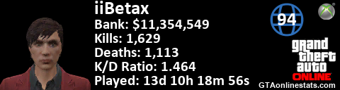 [URL=http://GTAonlinestats.com/showplayer/iiBetax][IMG]http://GTAonlinestats.com/dmsignature/iiBetax/sig.png[/IMG][/URL]