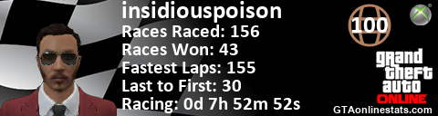[URL=http://GTAonlinestats.com/showplayer/insidiouspoison][IMG]http://GTAonlinestats.com/racesignature/insidiouspoison/sig.png[/IMG][/URL]