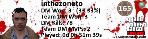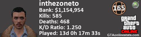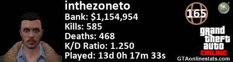 [URL=http://GTAonlinestats.com/showplayer/inthezoneto][IMG]http://GTAonlinestats.com/dmsignature/inthezoneto/sig.png[/IMG][/URL]