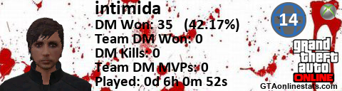 [URL=http://GTAonlinestats.com/showplayer/intimida/2][IMG]http://GTAonlinestats.com/dmsignature/intimida/2/sig.png[/IMG][/URL]
