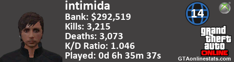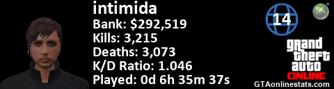[URL=http://GTAonlinestats.com/showplayer/intimida/2][IMG]http://GTAonlinestats.com/signature/intimida/2/sig.png[/IMG][/URL]