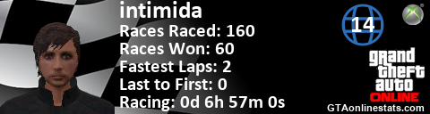 [URL=http://GTAonlinestats.com/showplayer/intimida/2][IMG]http://GTAonlinestats.com/racesignature/intimida/2/sig.png[/IMG][/URL]