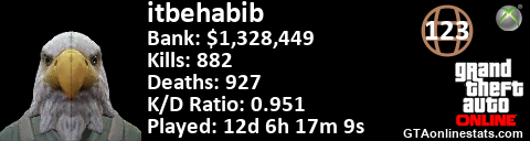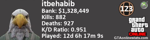 [URL=http://GTAonlinestats.com/showplayer/itbehabib][IMG]http://GTAonlinestats.com/dmsignature/itbehabib/sig.png[/IMG][/URL]