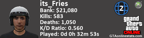 [URL=http://GTAonlinestats.com/showplayer/its_Fries/3][IMG]http://GTAonlinestats.com/greysignature/its_Fries/3/sig.png[/IMG][/URL]