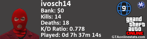<a href="http://GTAonlinestats.com/showplayer/ivosch14"><img src="http://GTAonlinestats.com/signature/ivosch14/sig.png" alt="Ivosch14" border="0" /></a>