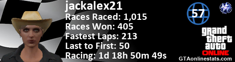[URL=http://GTAonlinestats.com/showplayer/jackalex21][IMG]http://GTAonlinestats.com/racesignature/jackalex21/sig.png[/IMG][/URL]