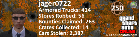 <a href="http://GTAonlinestats.com/showplayer/jager0722"><img src="http://GTAonlinestats.com/crimesignature/jager0722/sig.png" alt="jager0722" border="0" /></a>