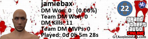 [URL=http://GTAonlinestats.com/showplayer/jamiebax][IMG]http://GTAonlinestats.com/dmsignature/jamiebax/sig.png[/IMG][/URL]