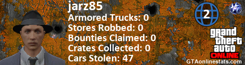 [URL=http://GTAonlinestats.com/showplayer/jarz85/2][IMG]http://GTAonlinestats.com/crimesignature/jarz85/2/sig.png[/IMG][/URL]