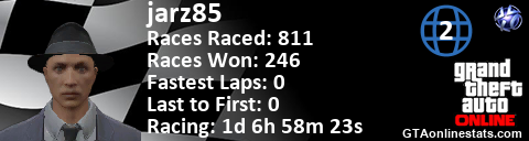 <a href="http://GTAonlinestats.com/showplayer/jarz85/2"><img src="http://GTAonlinestats.com/racesignature/jarz85/2/sig.png" alt="jarz85" border="0" /></a>