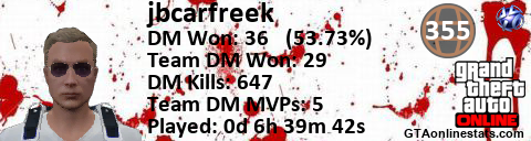 [URL=http://GTAonlinestats.com/showplayer/jbcarfreek][IMG]http://GTAonlinestats.com/dmsignature/jbcarfreek/sig.png[/IMG][/URL]