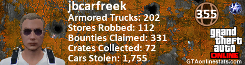 [URL=http://GTAonlinestats.com/showplayer/jbcarfreek][IMG]http://GTAonlinestats.com/randomsignature/jbcarfreek/sig.png[/IMG][/URL]