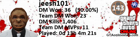 [URL=http://GTAonlinestats.com/showplayer/jeesh101/2][IMG]http://GTAonlinestats.com/dmsignature/jeesh101/2/sig.png[/IMG][/URL]
