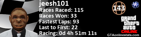 <a href="http://GTAonlinestats.com/showplayer/jeesh101/2"><img src="http://GTAonlinestats.com/racesignature/jeesh101/2/sig.png" alt="jeesh101" border="0" /></a>