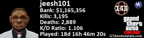 <a href="http://GTAonlinestats.com/showplayer/jeesh101/2"><img src="http://GTAonlinestats.com/signature/jeesh101/2/sig.png" alt="jeesh101" border="0" /></a>