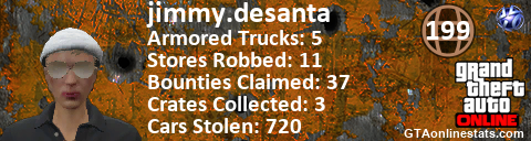 [URL=http://GTAonlinestats.com/showplayer/jimmy.desanta][IMG]http://GTAonlinestats.com/crimesignature/jimmy.desanta/sig.png[/IMG][/URL]