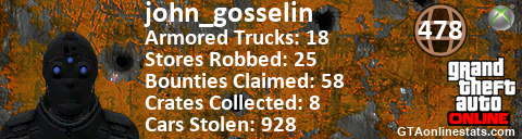 <a href="http://GTAonlinestats.com/showplayer/john_gosselin"><img src="http://GTAonlinestats.com/crimesignature/john_gosselin/sig.png" alt="John_Gosselin" border="0" /></a>