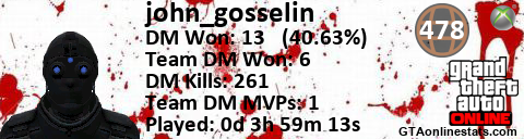 [URL=http://GTAonlinestats.com/showplayer/john_gosselin][IMG]http://GTAonlinestats.com/dmsignature/john_gosselin/sig.png[/IMG][/URL]