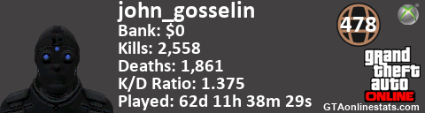 [URL=http://GTAonlinestats.com/showplayer/john_gosselin][IMG]http://GTAonlinestats.com/randomsignature/john_gosselin/sig.png[/IMG][/URL]