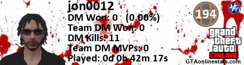 [URL=http://GTAonlinestats.com/showplayer/jon0012][IMG]http://GTAonlinestats.com/dmsignature/jon0012/sig.png[/IMG][/URL]