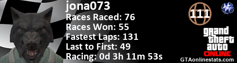 [URL=http://GTAonlinestats.com/showplayer/jona073][IMG]http://GTAonlinestats.com/racesignature/jona073/sig.png[/IMG][/URL]