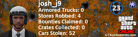 [URL=http://GTAonlinestats.com/showplayer/josh_j9/2][IMG]http://GTAonlinestats.com/crimesignature/josh_j9/2/sig.png[/IMG][/URL]