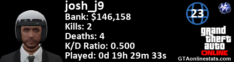[URL=http://GTAonlinestats.com/showplayer/josh_j9/2][IMG]http://GTAonlinestats.com/signature/josh_j9/2/sig.png[/IMG][/URL]