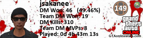 [URL=http://GTAonlinestats.com/showplayer/jsakanee][IMG]http://GTAonlinestats.com/dmsignature/jsakanee/sig.png[/IMG][/URL]