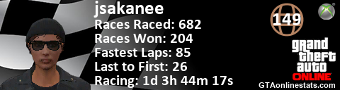 <a href="http://GTAonlinestats.com/showplayer/jsakanee"><img src="http://GTAonlinestats.com/racesignature/jsakanee/sig.png" alt="jsakanee" border="0" /></a>